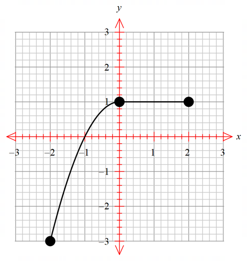 \(y = \left\{ {\begin{array}{*{20}{c}}1&{0 \le x \le 2}\\{1 - {x^2}}&{ - 2 \le x < 0}\end{array}} \right.\)