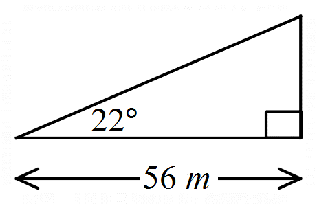 From a point \(56 \text{ m}\) from the base of a cliff, the angle of elevation to the cliff top is \(22^\circ\). Find the height of the cliff (nearest metre).