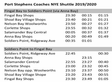 c) How much faster was the 00:15 coach from Fingal Bay Shops to Soldiers Point, then the 23:30 coach from Fingal Bay Shops to Soldiers point?